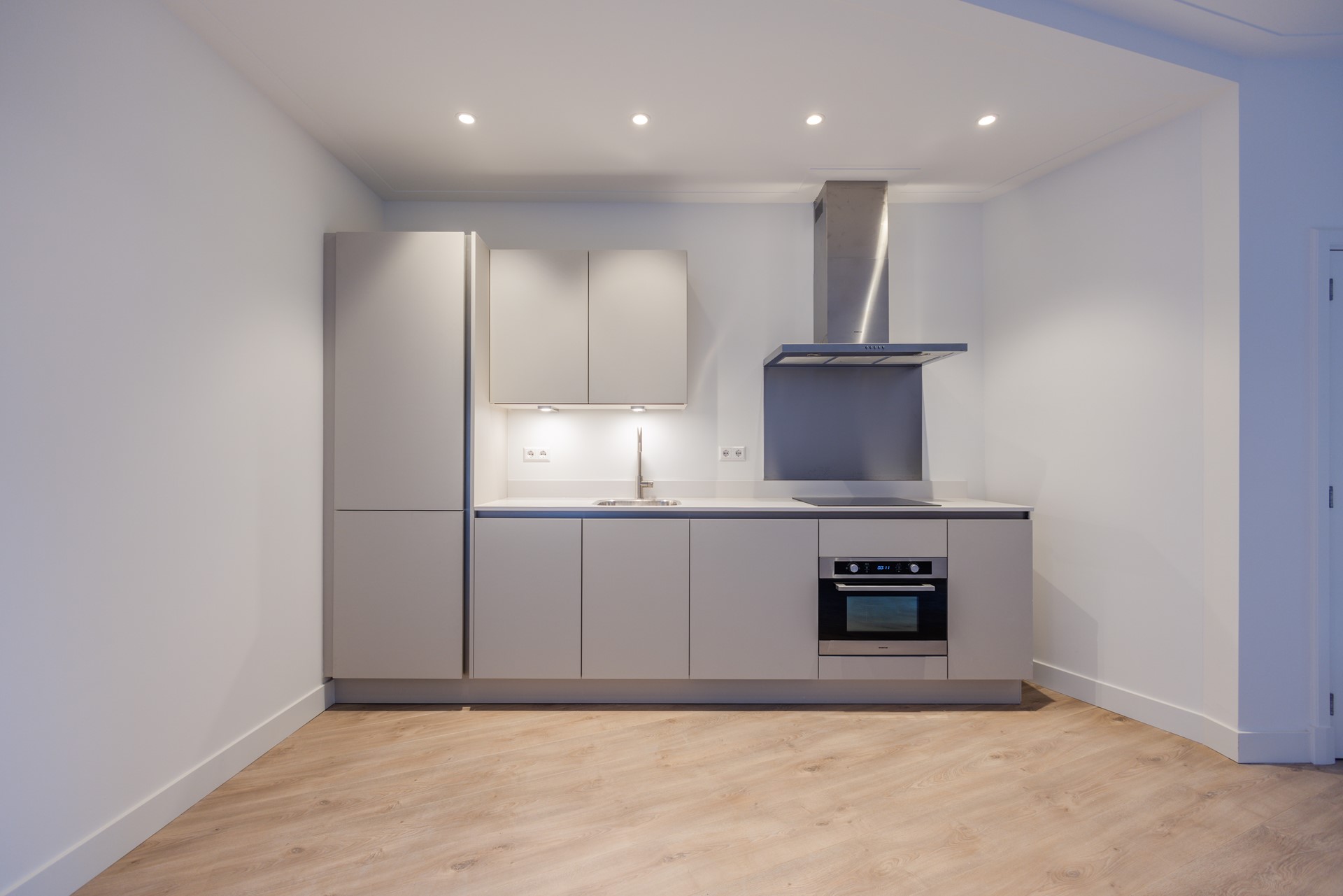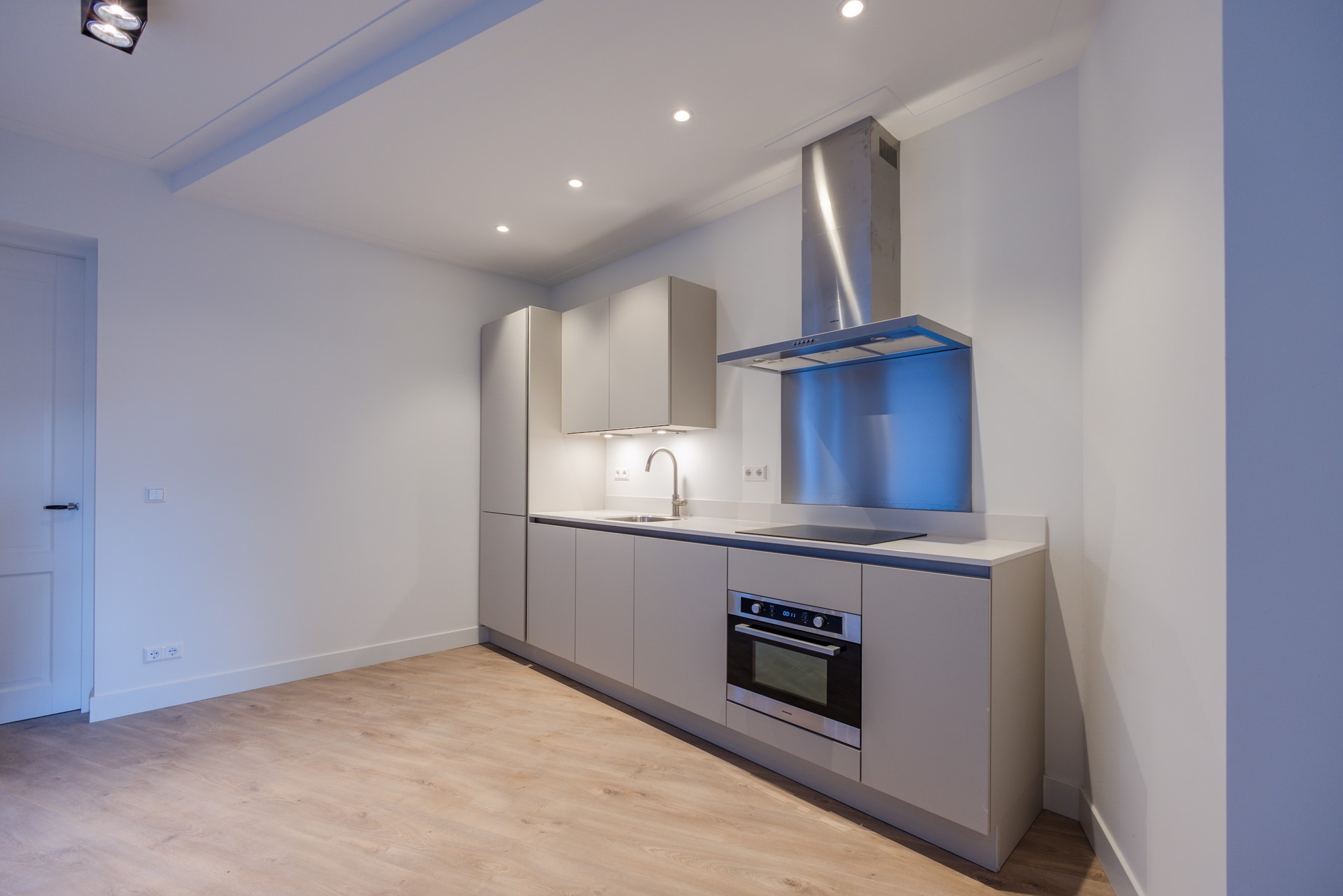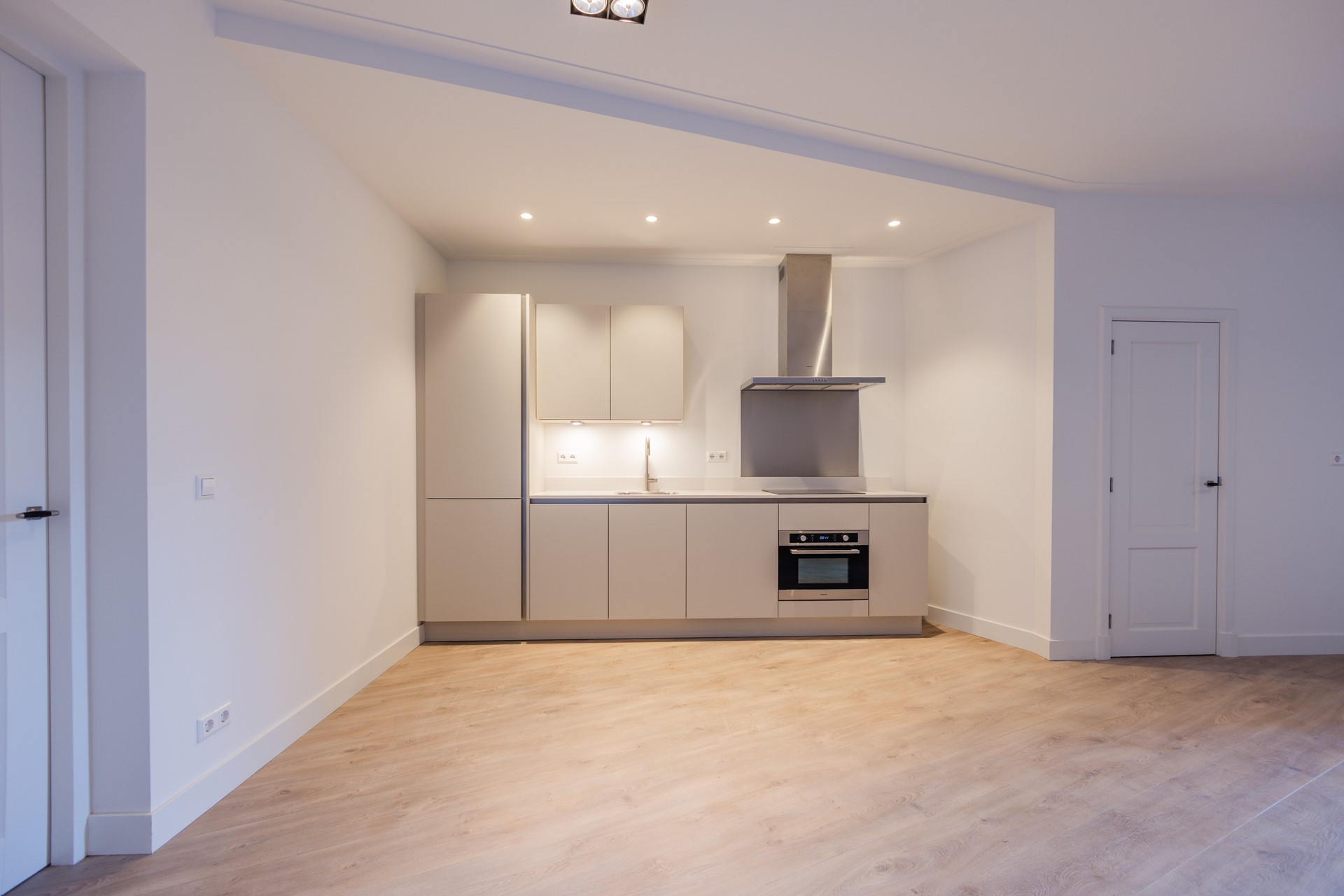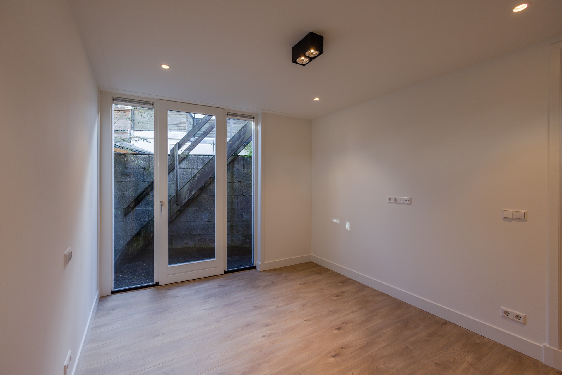 Binnenkomst in de royale woonkamer met open moderne keuken. Aan de achterzijde een moderne patio die de ruimte van aangenaam daglicht voorziet. Op de begane grond bevindt zich aan de achterzijde een kleine ruimte die uitzicht heeft op de patio. Ideal als werkkamer. De keuken is modern en voorzien van alle benodigde inbouwapparatuur, zoals een combi oven-magnetron, inductie kookplaat, afzuigkap, vaatwasser, koelkast en vriezer.Aan de achterzijde is de slaapkamer gelegen. Deze kamer geeft toegang tot de stadse patio.