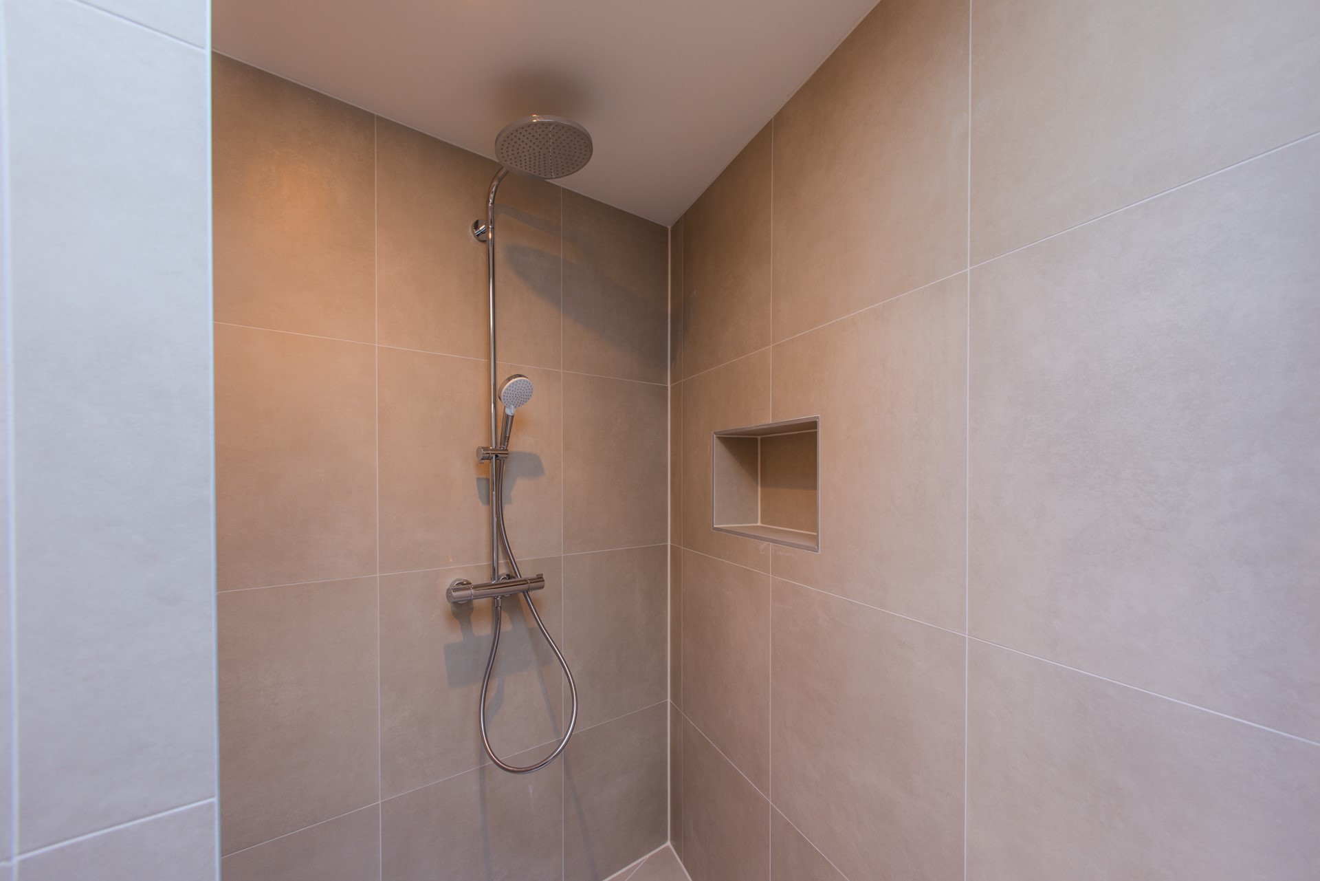 Hal met toegang tot de tweede slaapkamer. De slaapkamer heeft een prettige omvang. Tevens. vanuit de hal toegang tot de badkamer en een apart toilet met fontein. De badkamer is voorzien van een luxe inloopdouche, dubbele wastafel, handdoek radiator. De provisieruimte biedt tevens ruimte voor de wasmachine en droger.