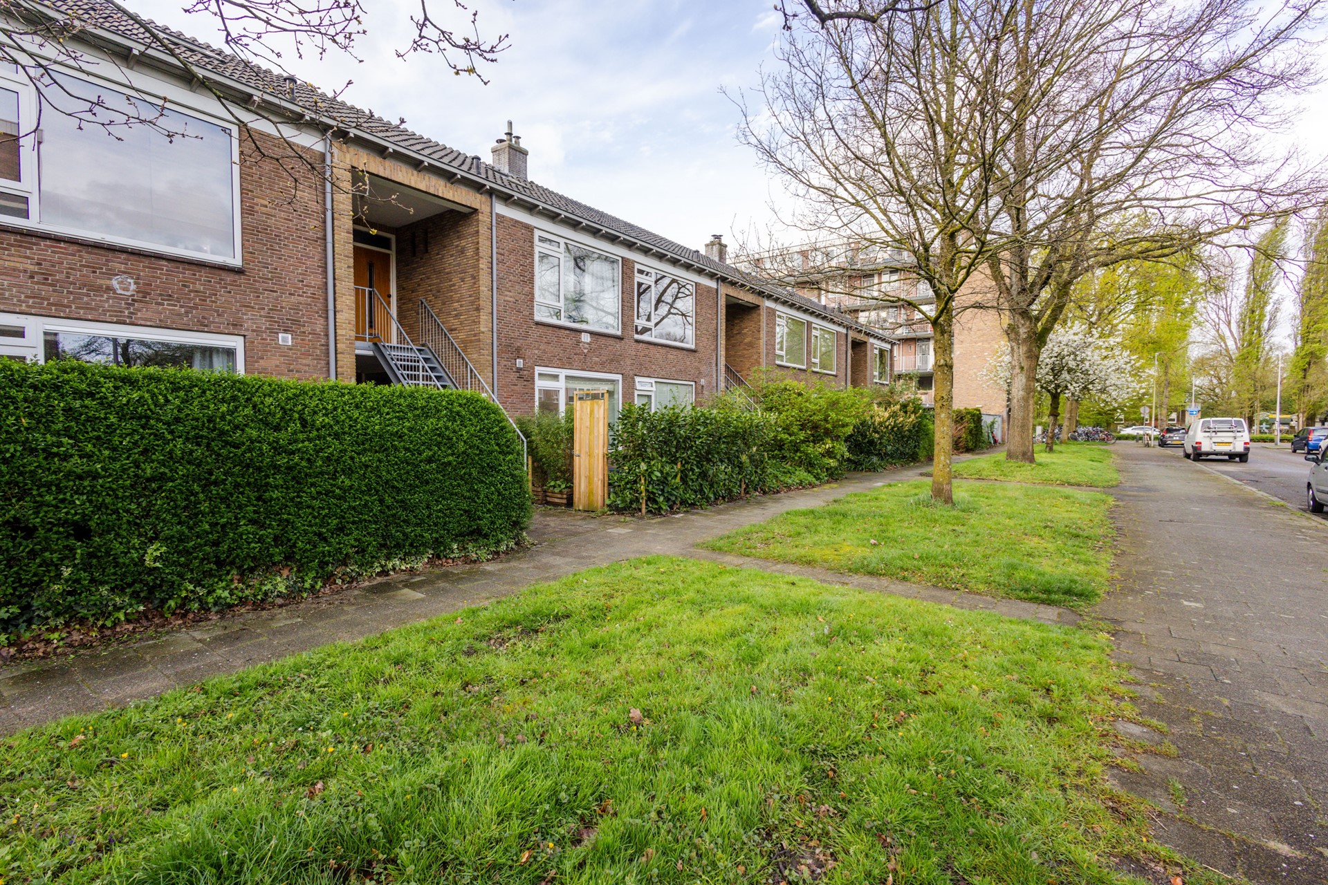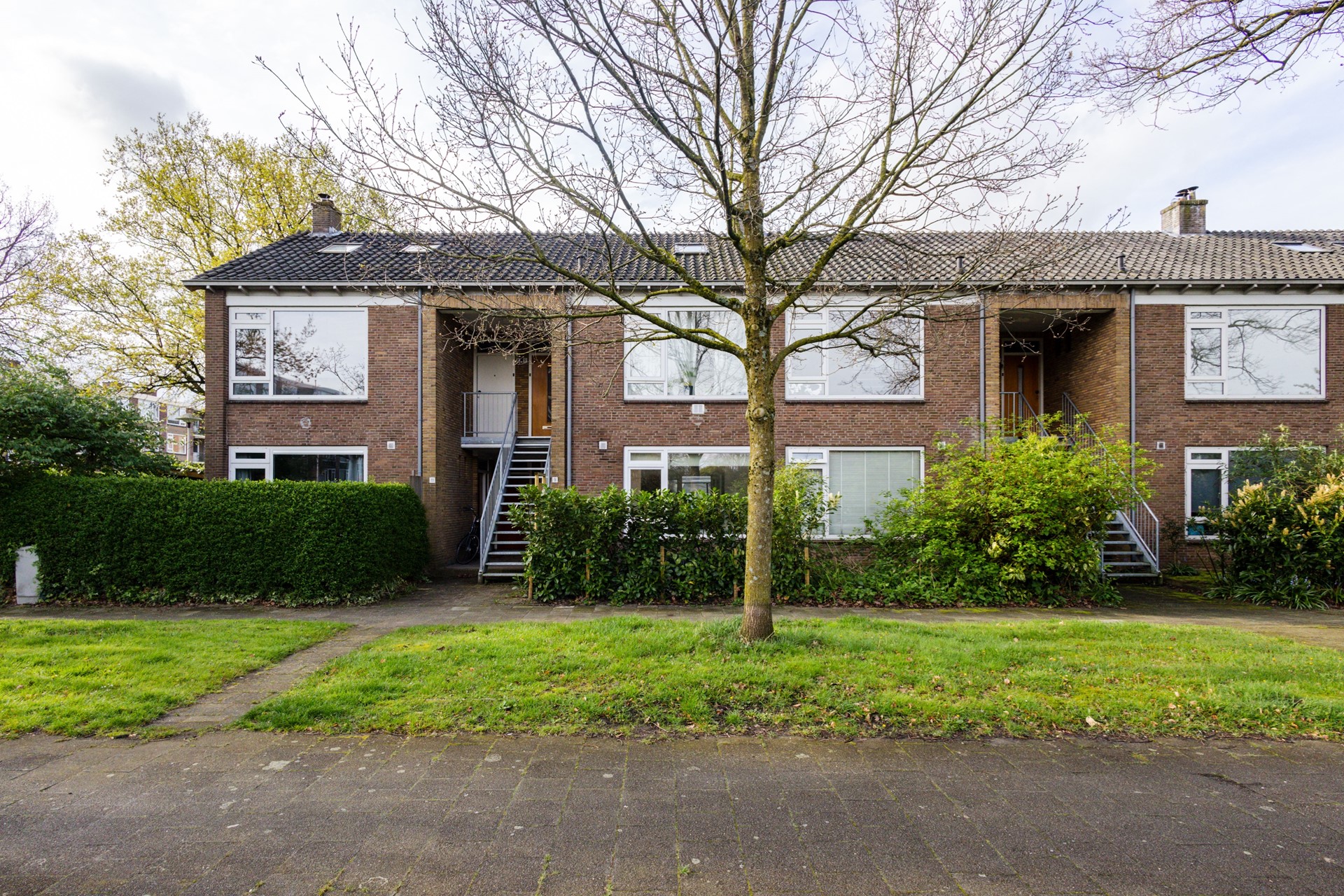 Bij aankomst valt direct de verzorgde voortuin op. Door de groene beplanting zit je hier lekker privé. De entree bevindt zich aan de rustige zijkant van het complex, wat zorgt voor een prettige en beschutte binnenkomst.