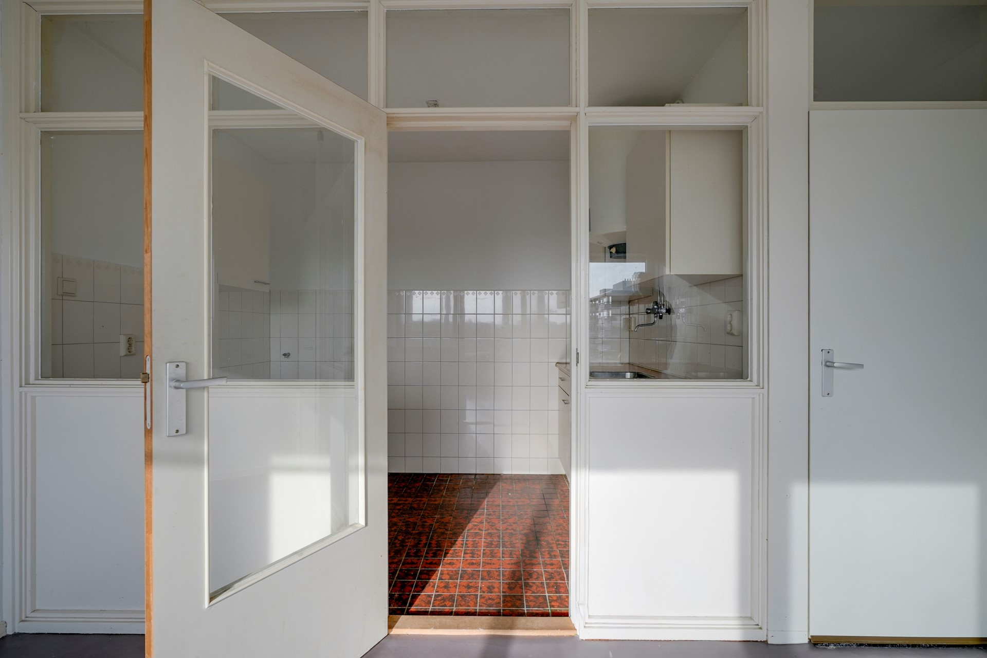 Je komt binnen in de ruime hal, die toegang geeft tot alle vertrekken. Aan de achterzijde van de woning bevindt zich de lichte woonkamer. Wanneer je de woonkamer binnen loopt voelt deze direct ruimtelijk en luchtig aan dankzij de grote raampartijen. Vanuit de woonkamer bereik je de keuken. Deze bevindt zich in een afgesloten ruimte, maar is eenvoudig open te maken voor wie een moderne, open leefgedeelte wilt creëren. Door de keuken bij de woonkamer te betrekken ontstaat er een ruim en prettig zit- en eetgedeelte, met volop mogelijkheden om een nieuwe keuken te plaatsen die geheel is voorzien van hedendaags comfort.