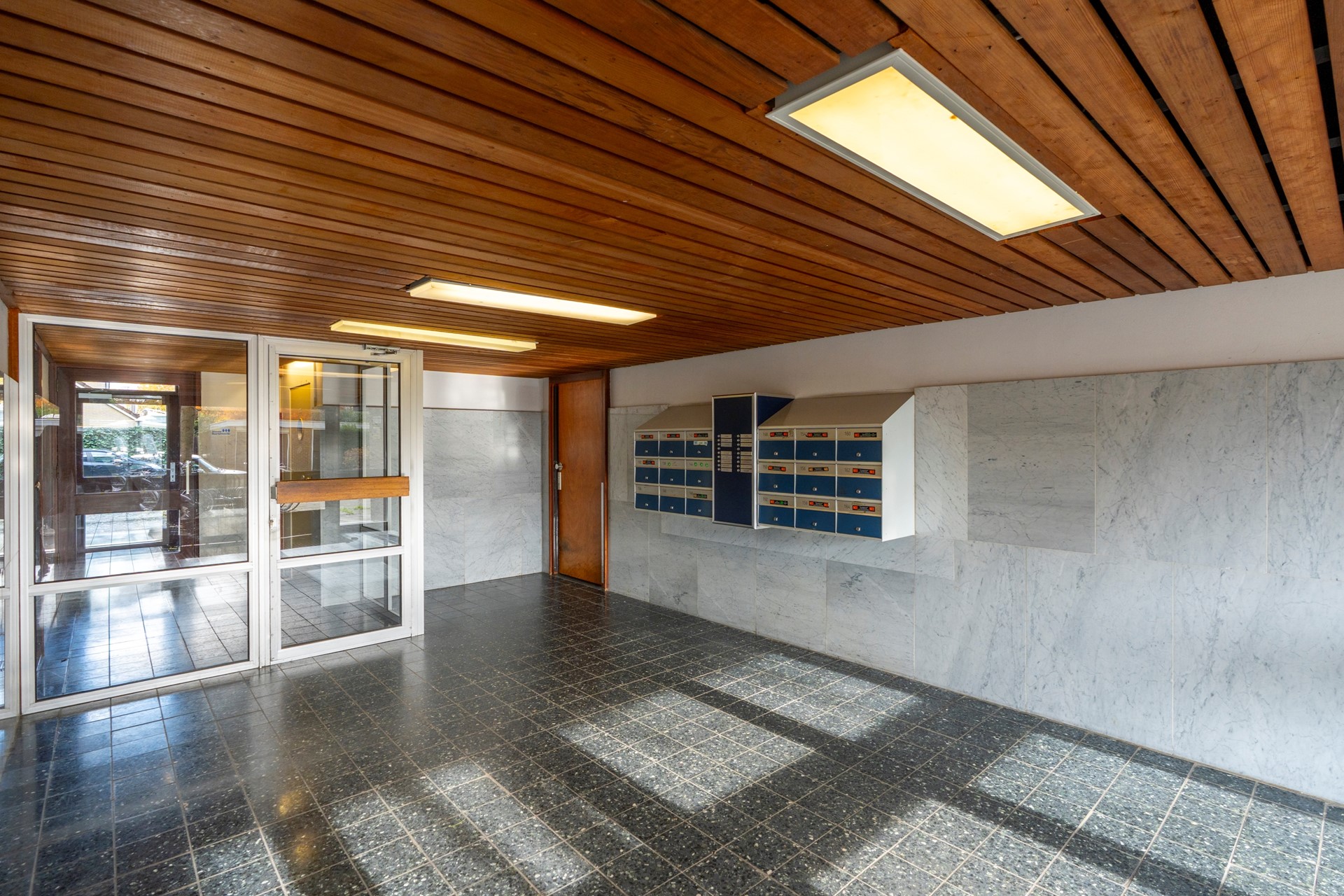 Via de nette gezamenlijke entree met brievenbussen, lift en trapopgang bereik je het appartement op de vijfde verdieping. Op de begane grond vind je tevens de privé bergingen, ideaal voor het stallen van fietsen of extra opslagruimte.