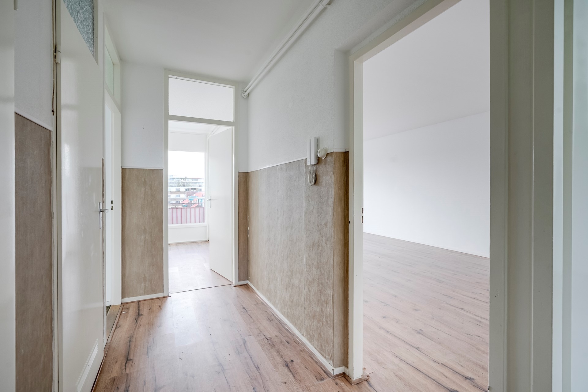 Bij binnenkomst kom je in een ruime hal die toegang biedt tot alle vertrekken.