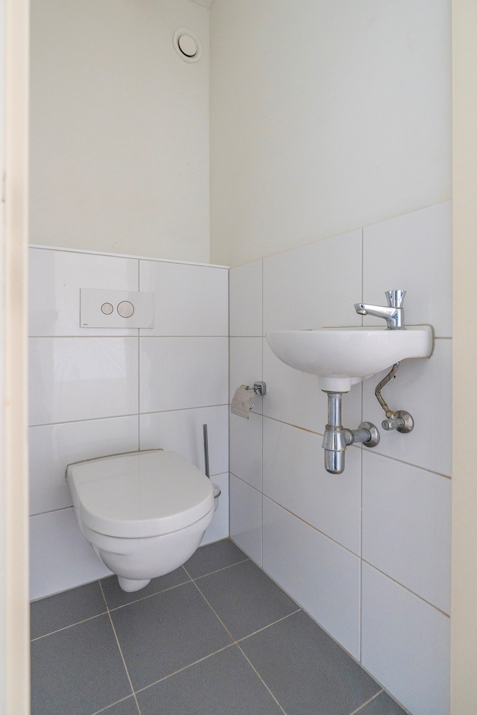 De badkamer is centraal in de woning gelegen en voorzien van een inloopdouche en wastafel. Daarnaast beschikt het appartement over een separaat toilet met fonteintje.