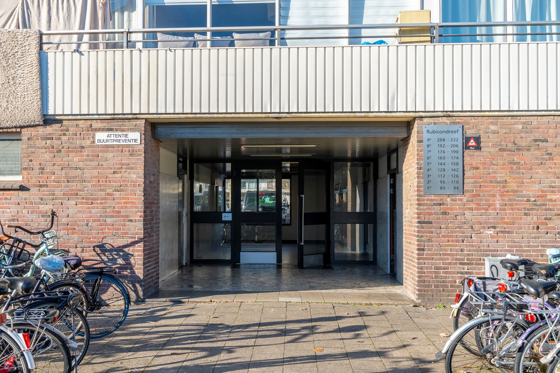 Via de entree aan de Rubicondreef bereik je de verzorgde gezamenlijke hal met postbussen, het trappenhuis en de lift. Vanuit de entree zijn tevens de bergingen bereikbaar.