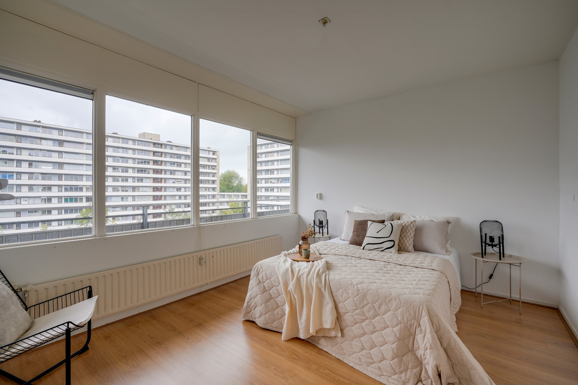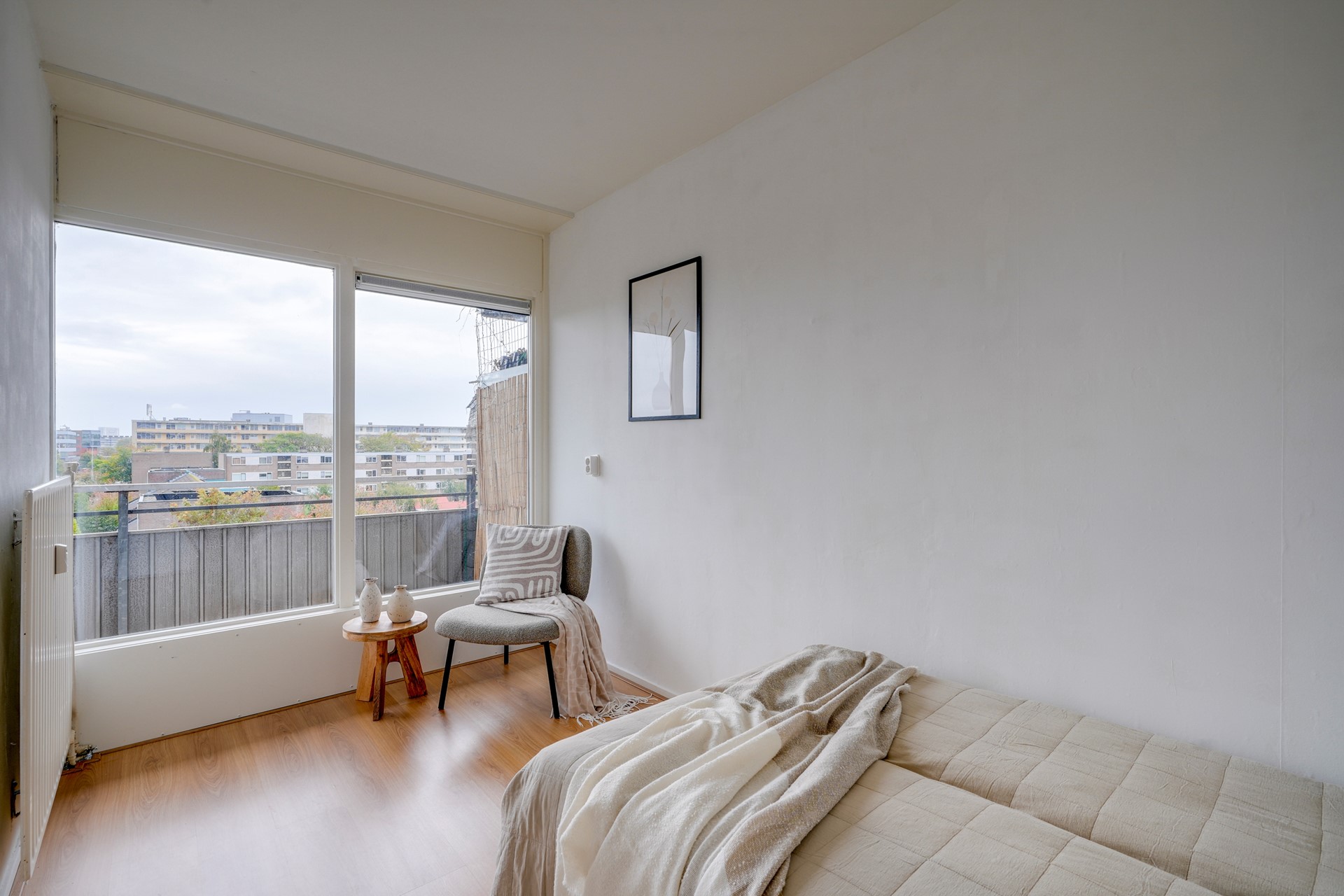 Het appartement beschikt over drie slaapkamers. Aan de achterzijde liggen twee kamers, waarvan één met directe toegang tot het balkon – ideaal als logeer- of werkkamer. De derde, ruim bemeten slaapkamer aan de voorzijde is perfect als master bedroom. De badkamer is netjes afgewerkt en voorzien van een inloopdouche en wastafel. Het separate toilet bevindt zich in de hal.