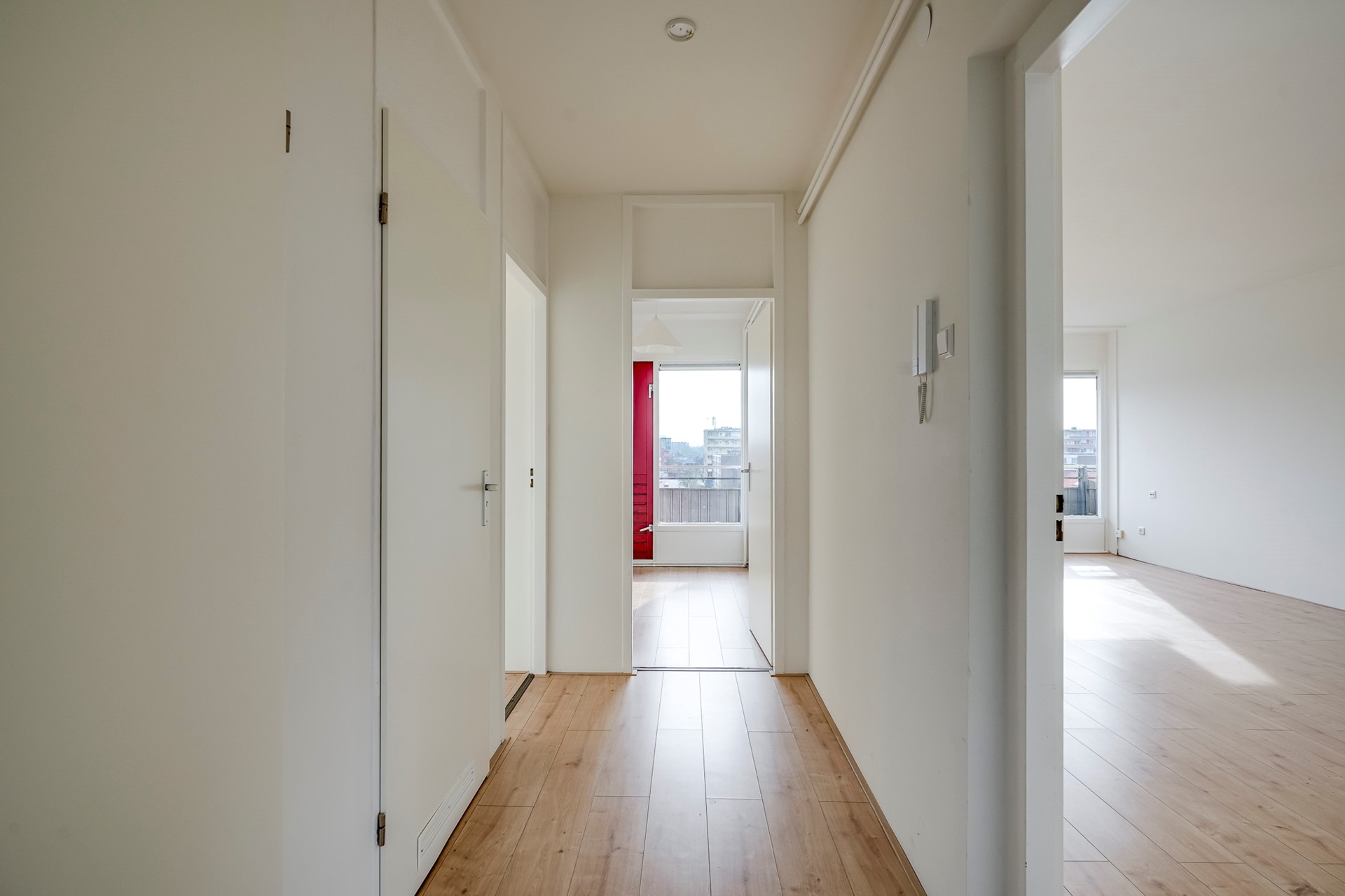 Binnenkomst van de woning in een ruime hal die toegang biedt tot alle vertrekken.