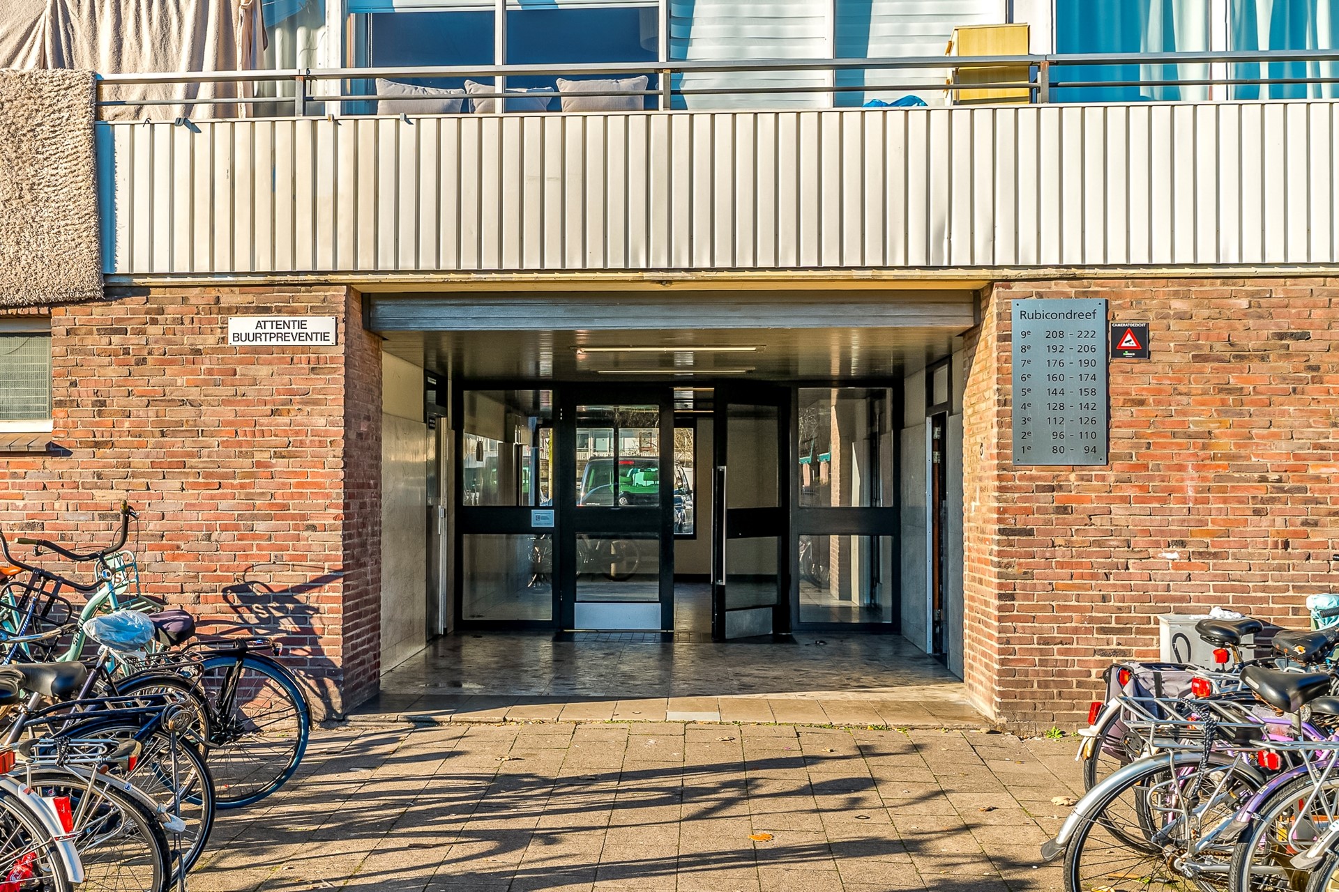 Via de entree aan de Rubicondreef kom je in de verzorgde, gezamenlijke hal met postbussen, trappenhuis en lift.