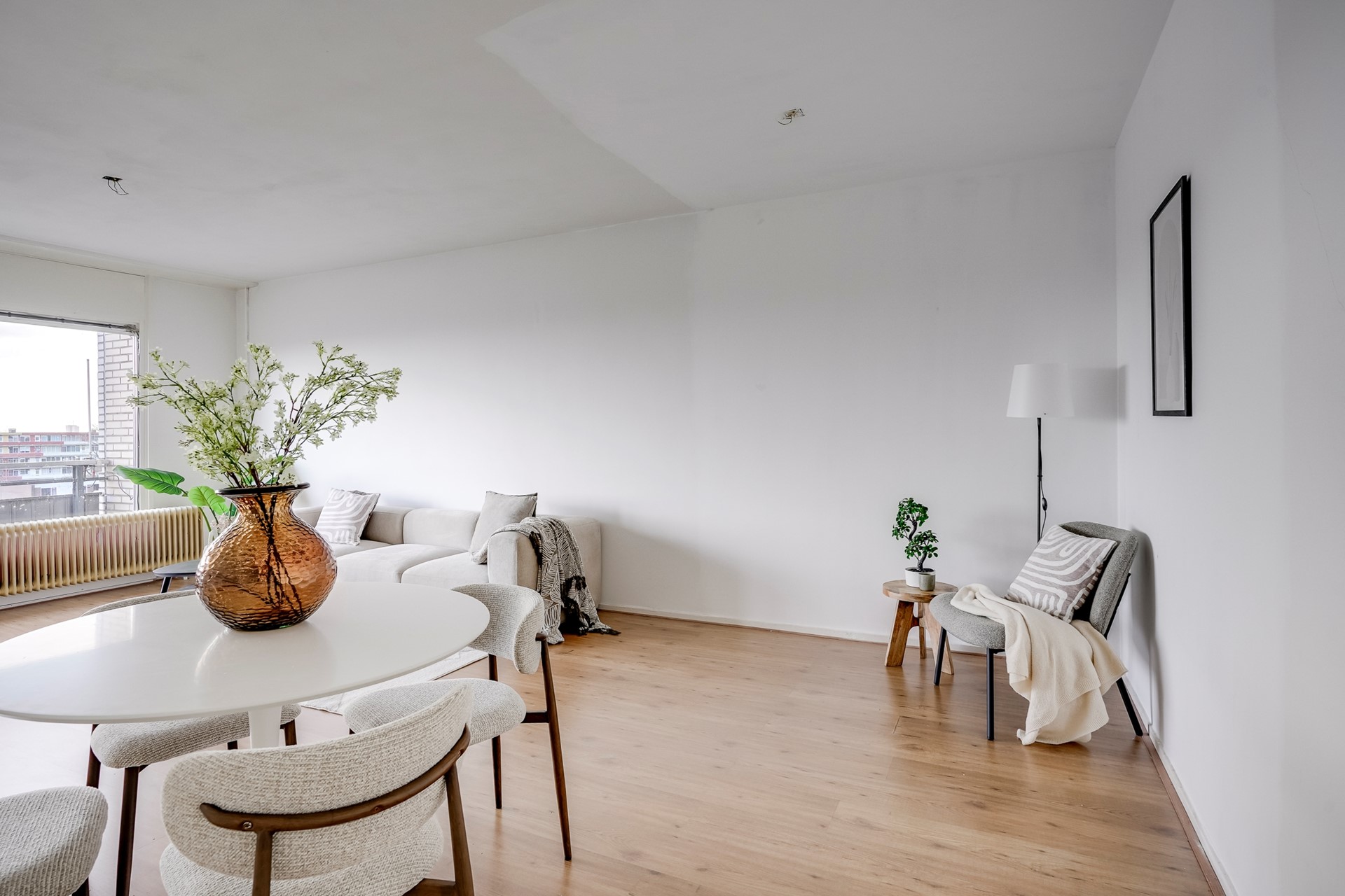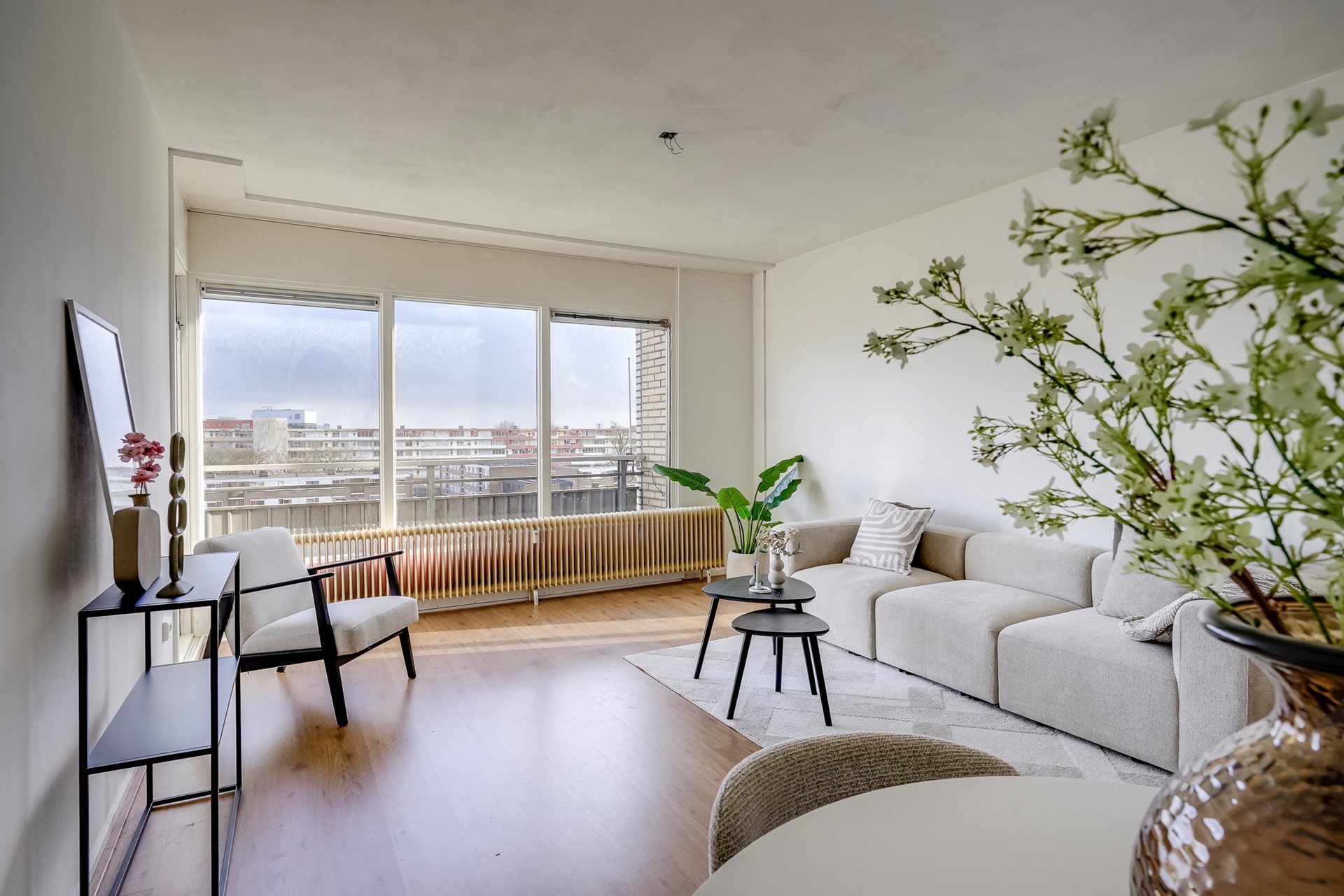 De woonkamer ligt aan de voorzijde van het appartement en is gesitueerd op het zuidoosten. Zodra je hier binnenloopt, valt het licht direct op. Er is voldoende ruimte voor een comfortabele zithoek en een eettafel. Vanuit de woonkamer stap je het balkon op, dat eveneens op het zuidoosten ligt. Hier geniet je van de ochtendzon en de eerste middagstralen, een heerlijke plek om de dag rustig te beginnen of juist in het weekend uitgebreid buiten te zitten.
