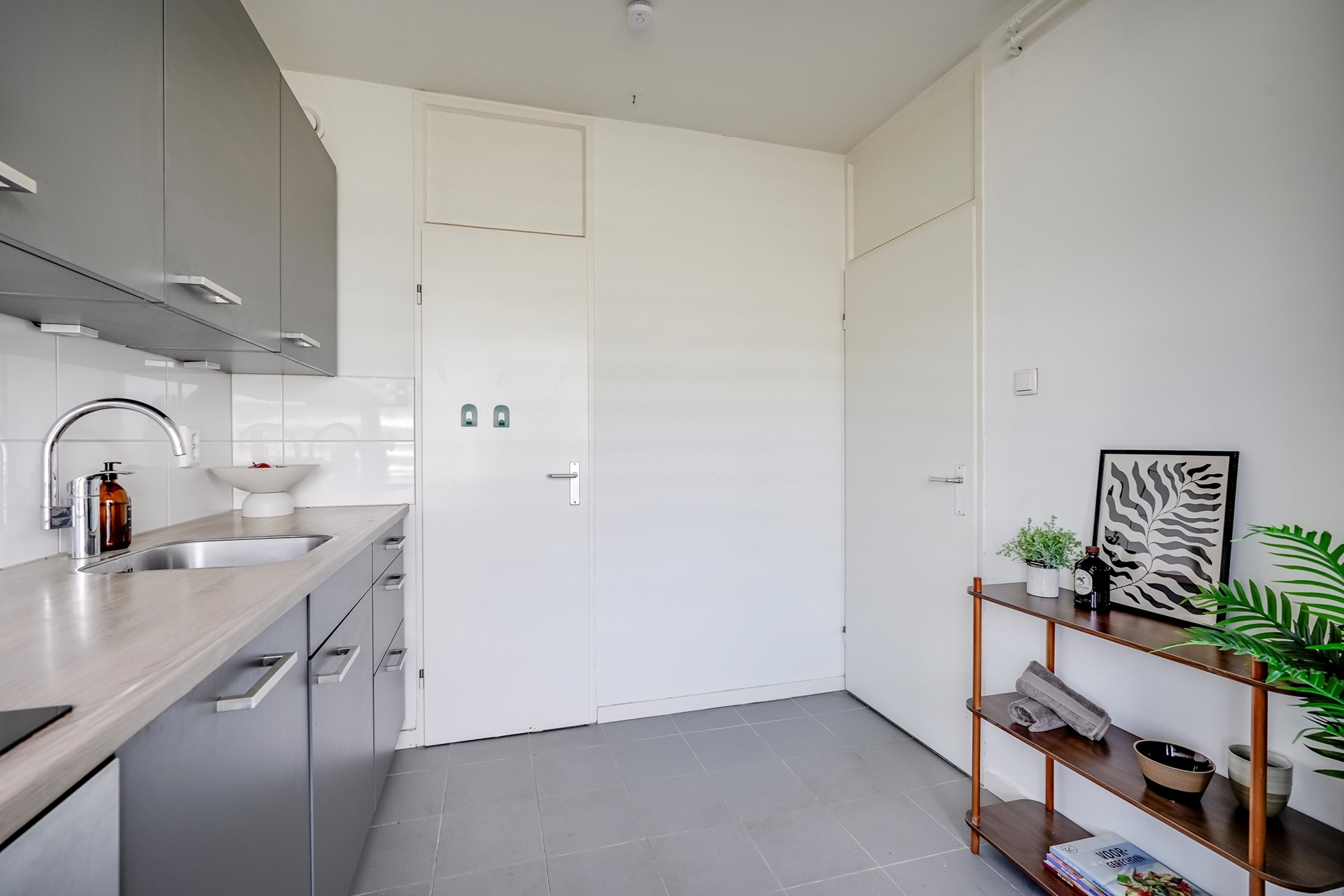 Je stapt het appartement binnen in een ruime hal die toegang geeft tot alle vertrekken. Hier is ook een praktische bergkast voor jassen en schoenen, fijn om de entree netjes te houden.
