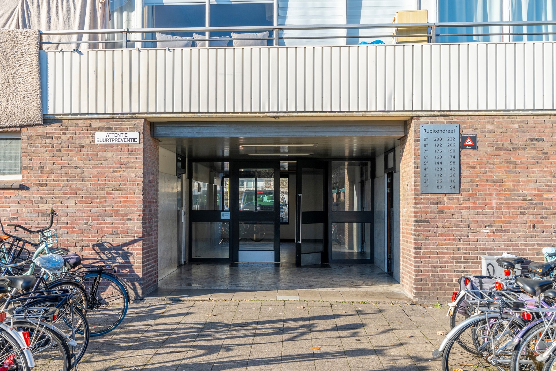 Via de entree aan de Rubicondreef kom je in de verzorgde, gezamenlijke hal met postbussen, trappenhuis en lift.