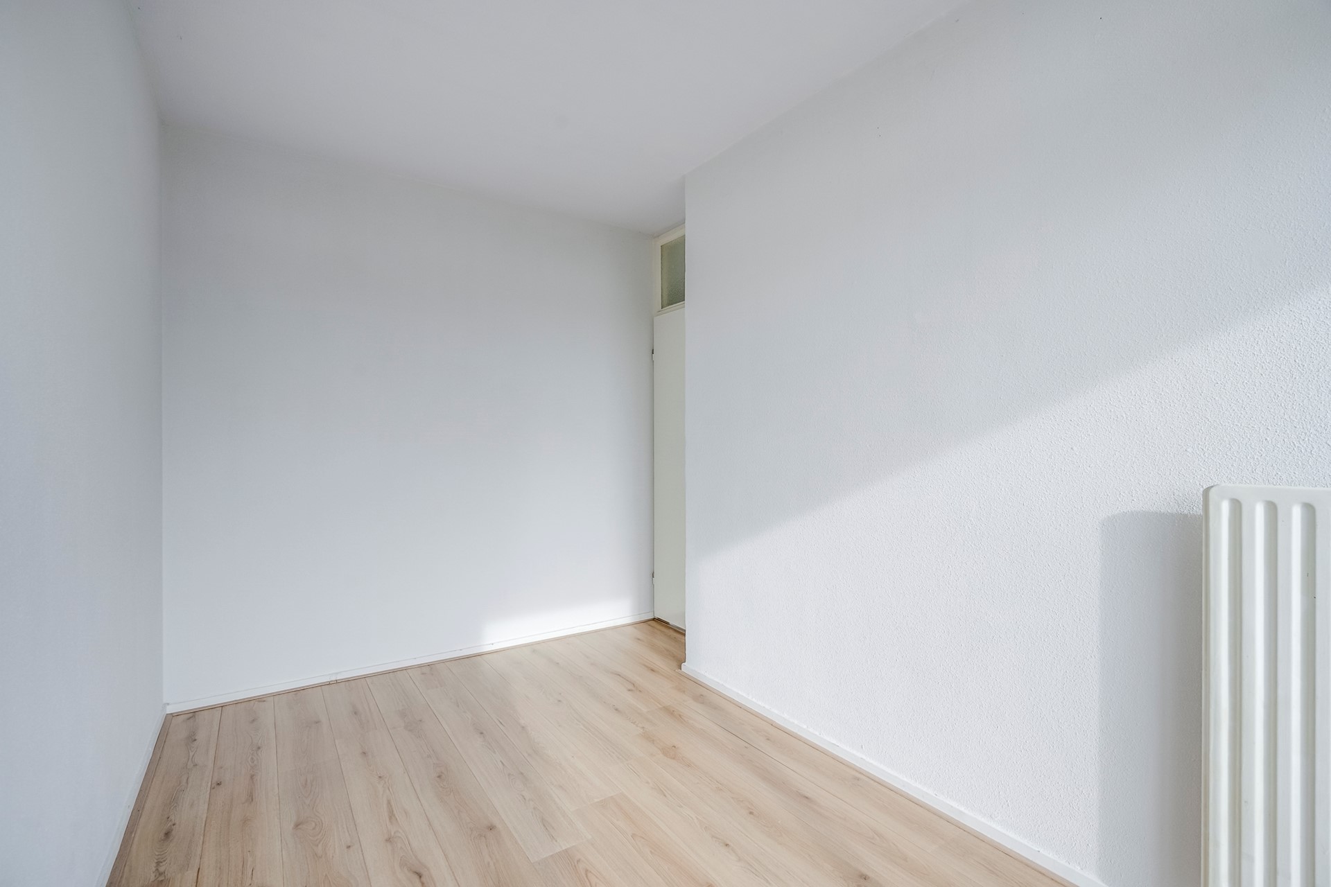 Het appartement beschikt over drie slaapkamers. Aan de achterzijde liggen twee kamers, waarvan één met directe toegang tot het balkon – ideaal als logeer- of werkkamer. De derde, ruim bemeten slaapkamer aan de voorzijde is perfect als master bedroom. De badkamer is netjes afgewerkt en voorzien van een inloopdouche en wastafel. Het separate toilet bevindt zich in de hal.