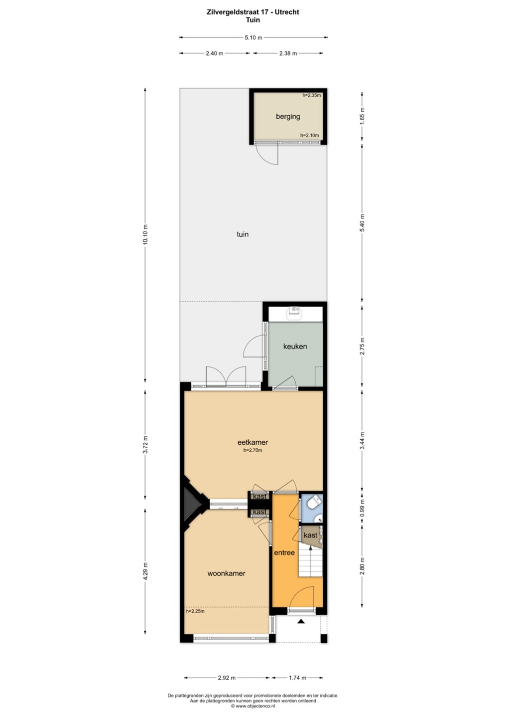 Via de openslaande deuren stap je de achtertuin in. Gelegen op het noorden, maar dankzij de lengte van de tuin vind je hier op verschillende momenten van de dag zowel zon als schaduw. Het is een plek waar je eenvoudig een groene, rustige stadsoase kunt creëren. Achterin de tuin bevindt zich een praktische berging en een achterom, wat extra gemak biedt.